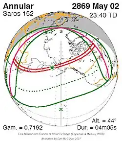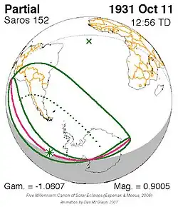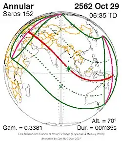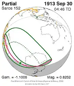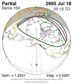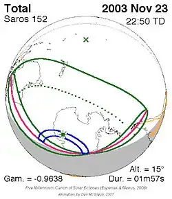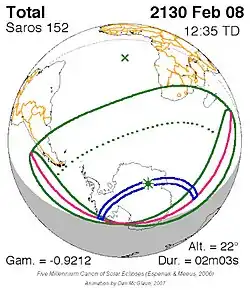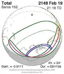 Saros 152 zonsverduisteringserie als bewegend beeld