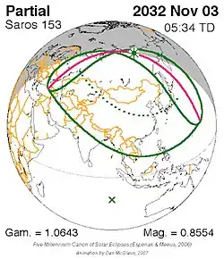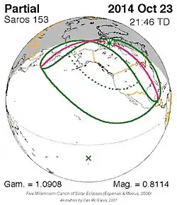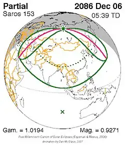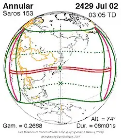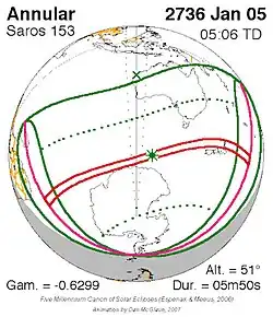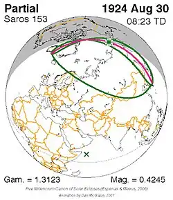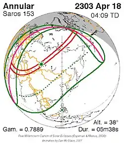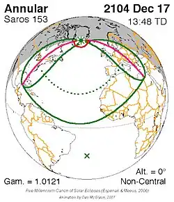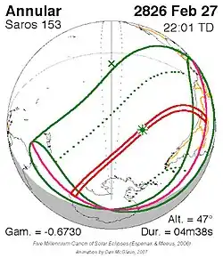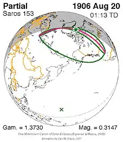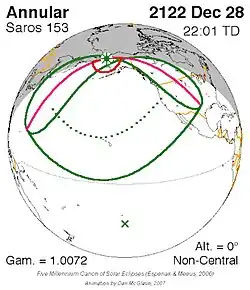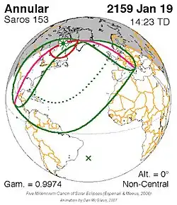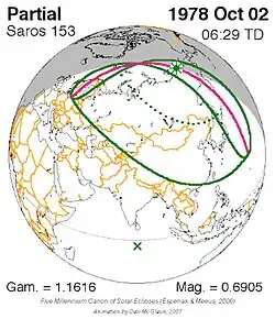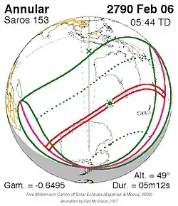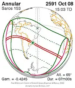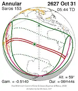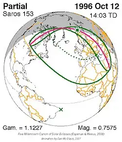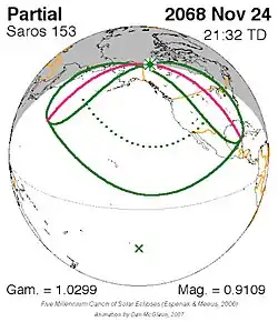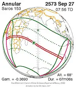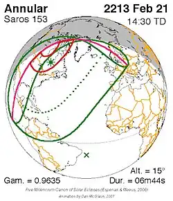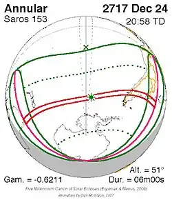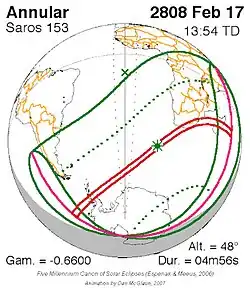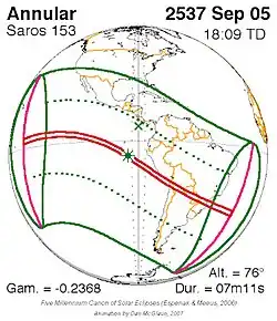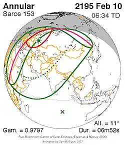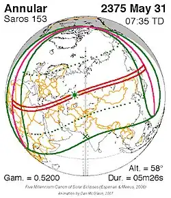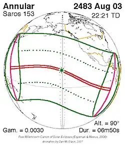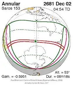 Saros 153 zonsverduisteringserie als bewegend beeld