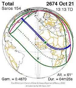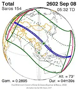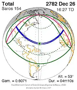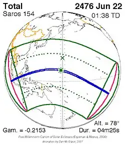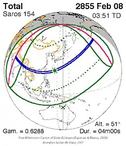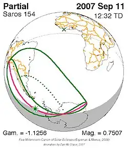 Saros 154 zonsverduisteringserie als bewegend beeld