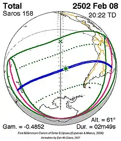 Saros 158 zonsverduisteringserie als bewegend beeld