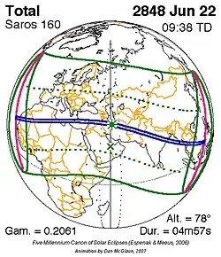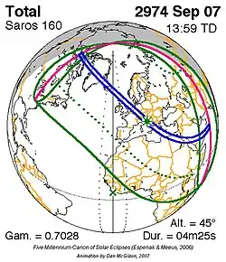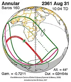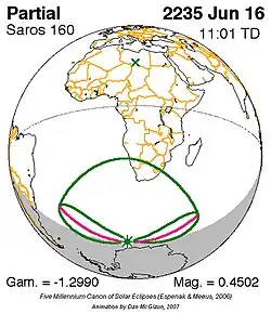 Saros 160 zonsverduisteringserie als bewegend beeld