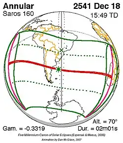 Saros 160 is een reeks zonsverduisteringen in de periode 13 mei 2181 t/m 20 juni 3443 . Deze serie duurt 1262 jaar en 38 dagen, bevat 71 verduisteringen en valt samen met de Inexserienrs 24 t/m 94.