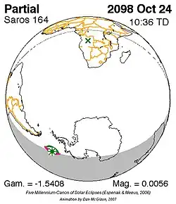 Saros 164 zonsverduisteringserie als bewegend beeld