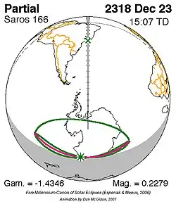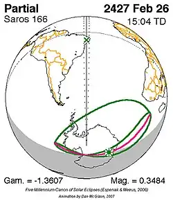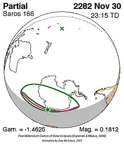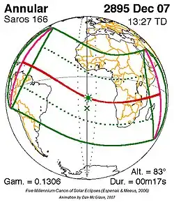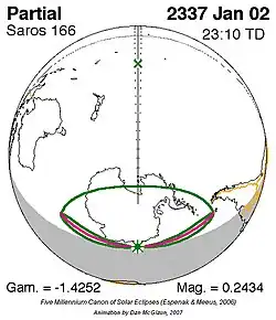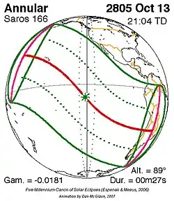 Saros 166 zonsverduisteringserie als bewegend beeld