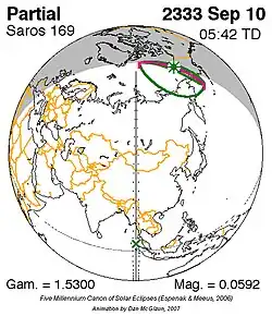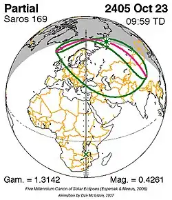 Saros 169 is een reeks zonsverduisteringen in de periode 10 september 2333 t/m 16 oktober 3595 . Deze serie duurt 1262 jaar en 36 dagen, bevat 71 verduisteringen en valt samen met de Inexserienrs 18 t/m 88.