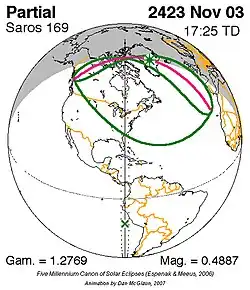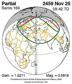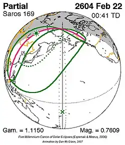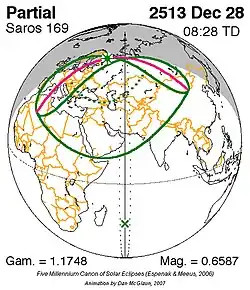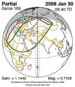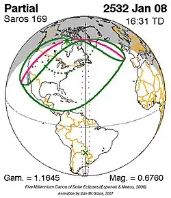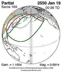 Saros 169 zonsverduisteringserie als bewegend beeld