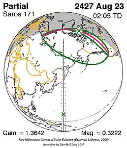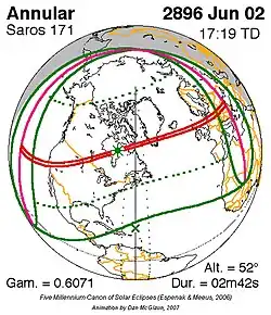 Saros 171 zonsverduisteringserie als bewegend beeld