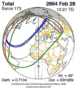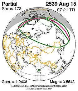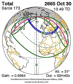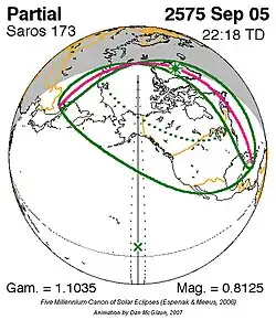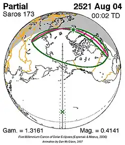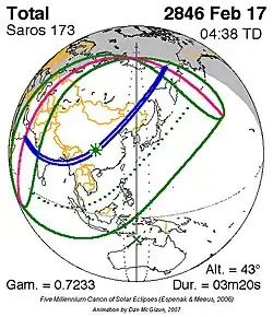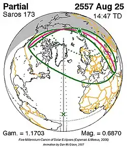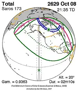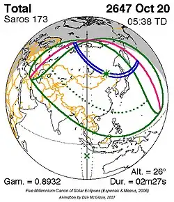 Saros 173 zonsverduisteringserie als bewegend beeld