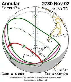 Saros 174 zonsverduisteringserie als bewegend beeld