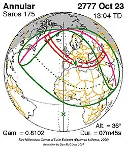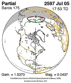 Saros 175 zonsverduisteringserie als bewegend beeld