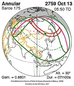 Saros 175 zonsverduisteringserie is een reeks zonsverduisteringen in de periode 5 juli 2597 t/m 31 juli 3841 . Deze serie duurt 1244 jaar en 26 dagen, bevat 70 verduisteringen en valt samen met de Inexserienrs 23 t/m 92.