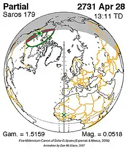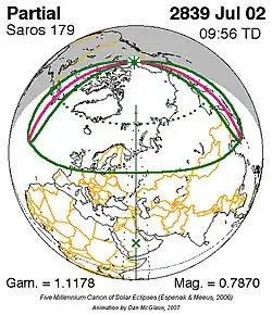 Saros 179 zonsverduisteringserie als bewegend beeld