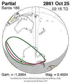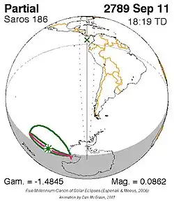 Saros 186 zonsverduisteringserie is een reeks zonsverduisteringen in de periode 11 september 2789 t/m 6 oktober 4033. Deze serie duurt 1244 jaar en 25 dagen, bevat 70 verduisteringen en valt samen met de Inexserienrs 16 t/m 85.