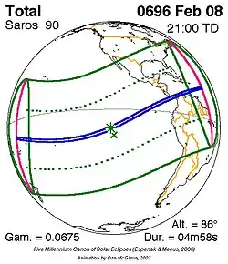| 57 | 64 | 27 mei 876 | 03:57:49 | T | 1.0753 | 58 N | 126 E | 54 | 301 | 5m 10s |