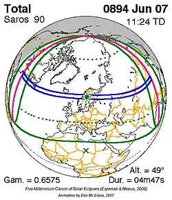 | 58 | 65 | 7 juni 894 | 11:24:20 | T | 1.0736 | 65 N | 19 E | 49 | 318 | 4m 47s |