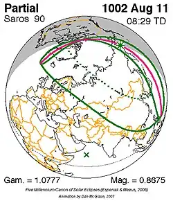 | 55 | 62 | 5 mei 840 | 12:57:00 | T | 1.0759 | 43 N | 11 W | 64 | 274 | 5m 46s |