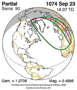 | 60 | 67 | 29 juni 930 | 02:17:13 | T | 1.0671 | 74 N | 173 W | 36 | 372 | 3m 55s |