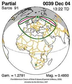 | 30 | 34 | 16 juni 364 | 14:35:59 | T | 1.0566 | 57 N | 19 W | 56 | 226 | 4m 2s |