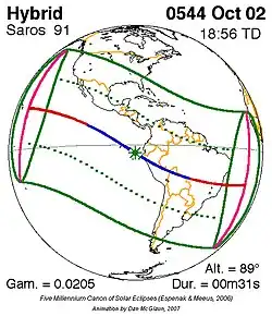 | Kortste hybride zonsverduistering | 2 Oktober 544 | 0m 31s | - |