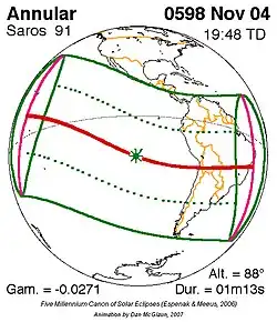 | Kortste ringvormige zonsverduistering | 14 Oktober 562 | 0m 5s | - |