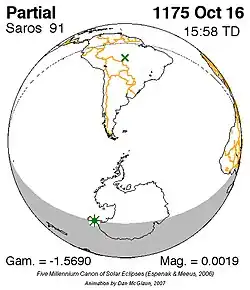| Kleinste gedeeltelijke zonsverduistering | 16 Oktober 1175 | - | 0.00210 |
