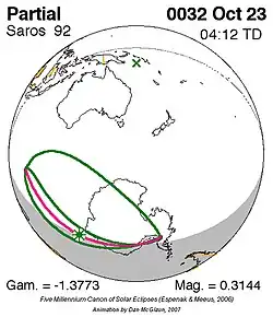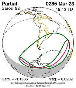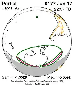 | Grootste gedeeltelijke zonsverduistering | 14 April 321 | - | 0.91568 |