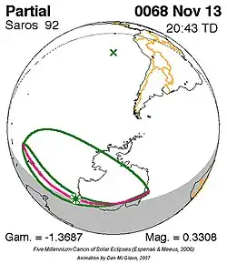 | 63 | 70 | 20 juni 1042 | 10:01:08 | A | 0.9959 | 72 N | 168 W | 7 | 125 | 0m 13s |