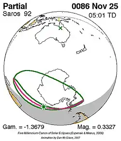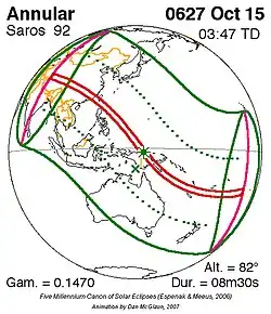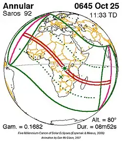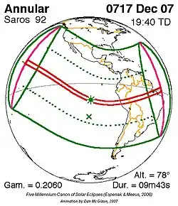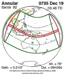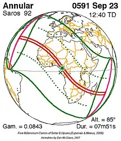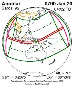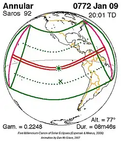 | Langste ringvormige zonsverduistering | 7 December 717 | 9m 43s | - |