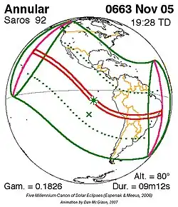 | 32 | 39 | 20 juli 483 | 19:00:54 | A | 0.9444 | 5 N | 85 W | 74 | 213 | 7m 18s |