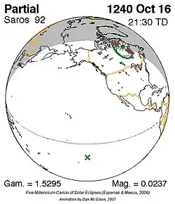 | Kleinste gedeeltelijke zonsverduistering | 16 Oktober 1240 | - | 0.02387 |