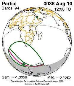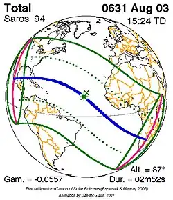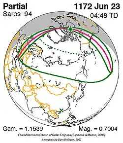 | 33 | 40 | 21 juni 559 | 10:05:22 | T | 1.0490 | 4 N | 48 E | 70 | 173 | 4m 59s |