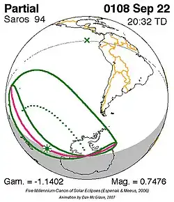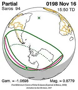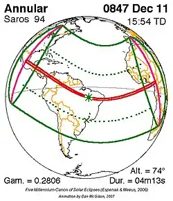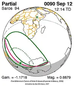 | Kortste hybride zonsverduistering | 15 September 703 | 0m 29s | - |