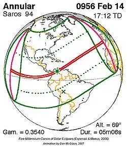 | 35 | 42 | 13 juli 595 | 00:38:15 | T | 1.0409 | 11 N | 172 W | 79 | 139 | 4m 2s |