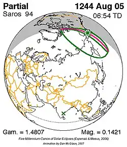 | 65 | 72 | 1 juni 1136 | 15:52:54 | A | 0.9459 | 78 N | 125 E | 11 | 1060 | 3m 18s |