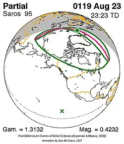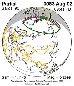 | Kleinste gedeeltelijke zonsverduistering | 11 Juli 47 | - | 0.01708 |