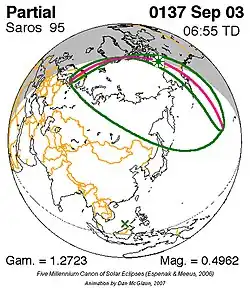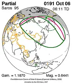 | 31 | 40 | 31 mei 588 | 03:31:01 | A | 0.9478 | 47 N | 137 E | 64 | 213 | 5m 18s |