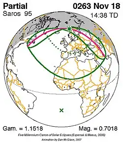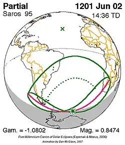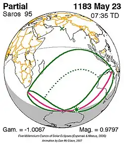 | Grootste gedeeltelijke zonsverduistering | 23 Mei 1183 | - | 0.97983 |