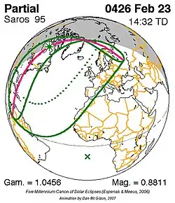| 22 | 31 | 23 feb. 426 | 14:32:00 | P | 0.8808 | 61 N | 80 W | 0 | - |
