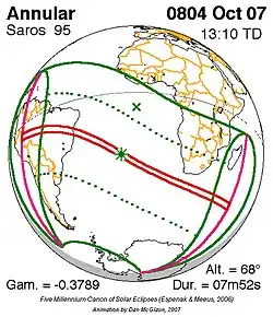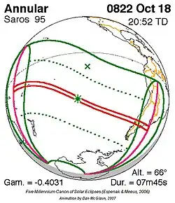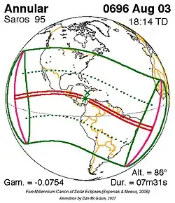 | Langste ringvormige zonsverduistering | 15 September 768 | 8m 0s | - |