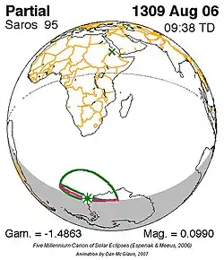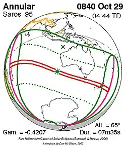 | 42 | 51 | 27 sep. 786 | 05:36:10 | A | 0.9344 | 22 S | 100 E | 70 | 260 | 7m 57s |