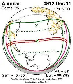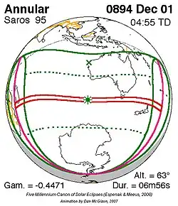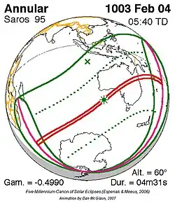 | Kortste ringvormige zonsverduistering | 12 Mei 1165 | 0m 28s | - |
