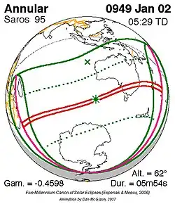| 51 | 60 | 2 jan. 949 | 05:29:20 | A | 0.9394 | 49 S | 117 E | 62 | 253 | 5m 54s |