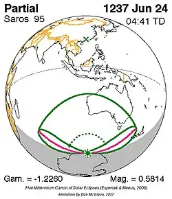 | 67 | 76 | 24 juni 1237 | 04:41:05 | P | 0.5815 | 67 S | 117 E | 0 | - |