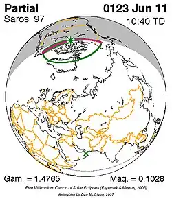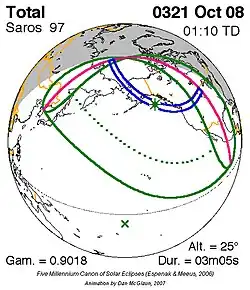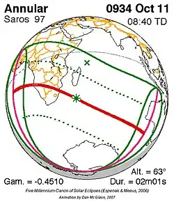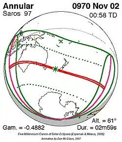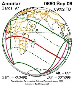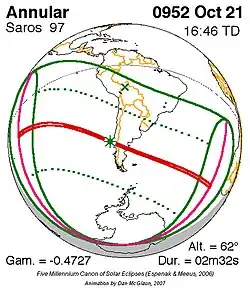| Kortste ringvormige zonsverduistering | 8 September 880 | 0m 9s | - |