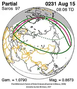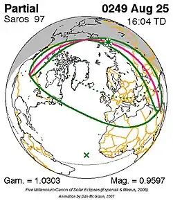 | Grootste gedeeltelijke zonsverduistering | 25 Augustus 249 | - | 0.95942 |