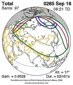 | 14 | 24 | 29 okt. 357 | 18:26:31 | T | 1.0406 | 45 N | 54 W | 29 | 280 | 3m 7s |