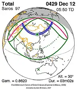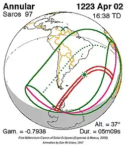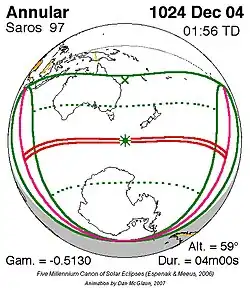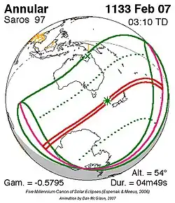 | Langste ringvormige zonsverduistering | 24 April 1259 | 5m 15s | - |