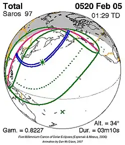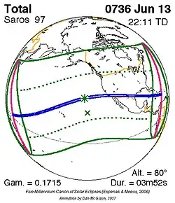 | 35 | 45 | 13 juni 736 | 22:10:51 | T | 1.0428 | 33 N | 140 W | 80 | 145 | 3m 52s |