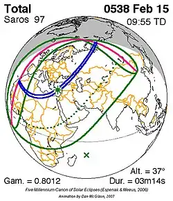 | 24 | 34 | 15 feb. 538 | 09:55:05 | T | 1.0412 | 36 N | 32 E | 37 | 226 | 3m 14s |