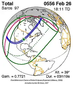 | 25 | 35 | 26 feb. 556 | 18:11:18 | T | 1.0433 | 36 N | 94 W | 39 | 222 | 3m 19s |